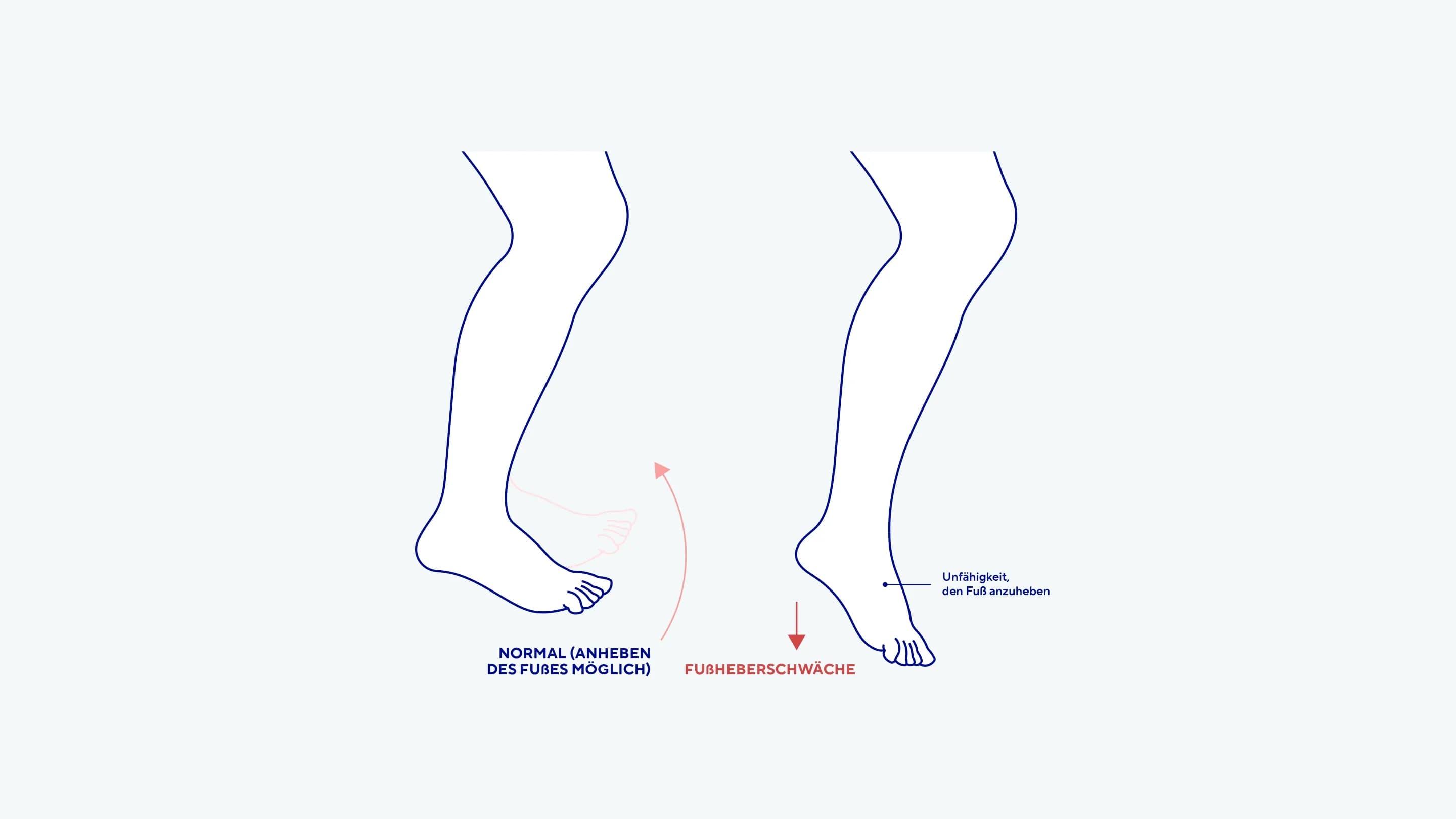 Durch den Kraftverlust oder eine Lähmung der fußhebenden Muskulatur sind Betroffene besonders beim Abrollen des Fußes und beim Vorschwingen des Beins während des Gehens eingeschränkt. Infolgedessen können die Zehen über den Boden streifen oder das Knie wird übermäßig gebeugt, um den Fuß anzuheben – ein Gangbild, das als „Steppergang" bezeichnet wird(1).