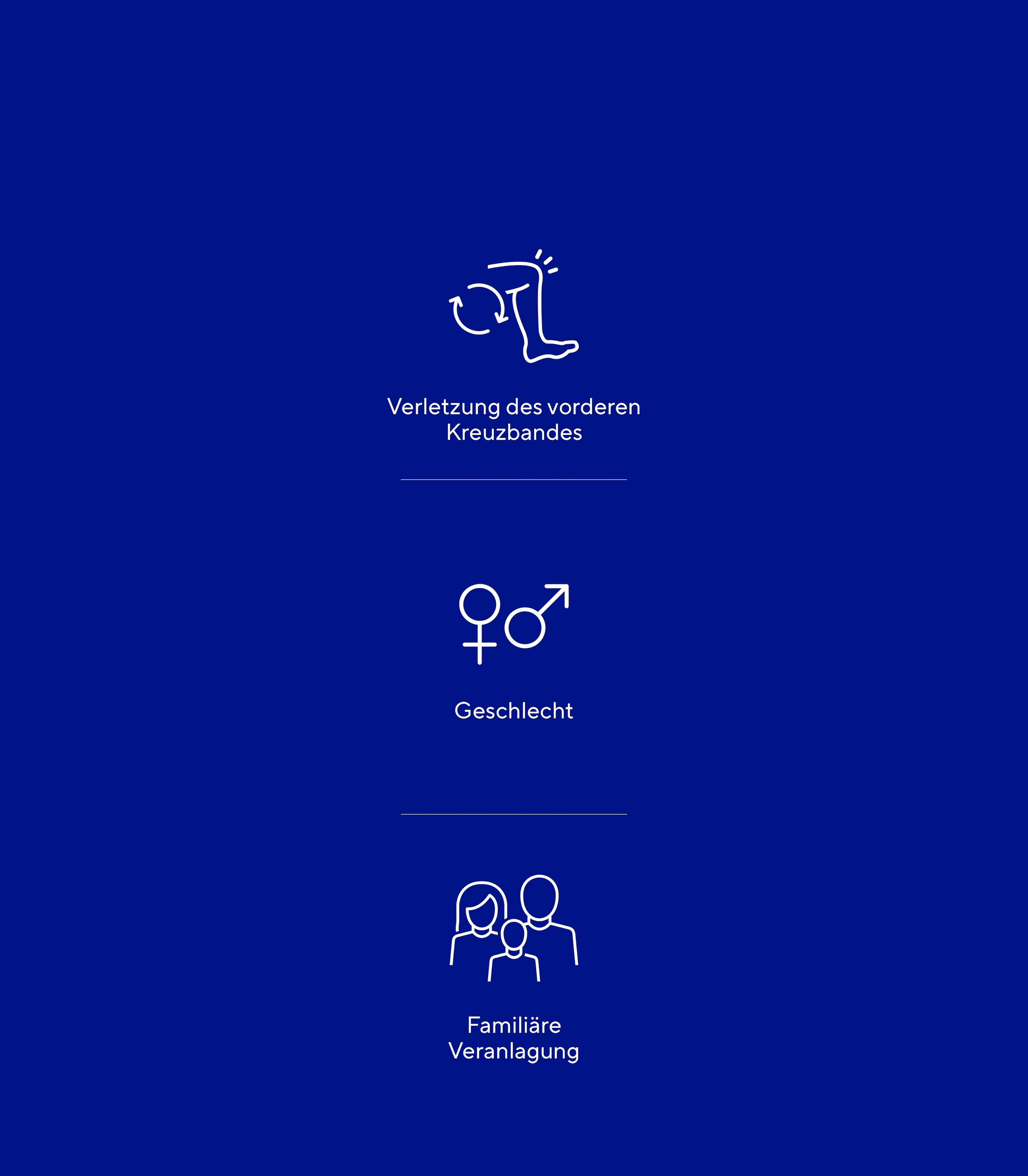 Untersuchungen zeigen eine signifikante genetische Veranlagung bei einem vorderen Kreuzbandriss, wobei die Erblichkeit auf 69% geschätzt wird. Studien haben spezifische Gene und biologische Signalwege identifiziert, die mit diesem Risiko in Verbindung stehen, was auf einen genetischen Mechanismus hindeutet, der beiden Geschlechtern gemeinsam ist(7).