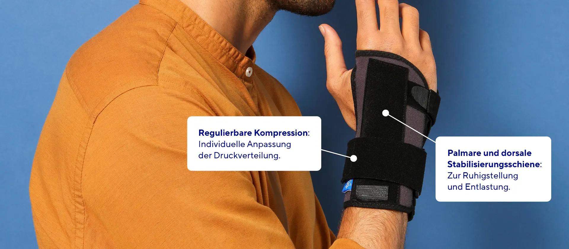 Dynastab® Dual ist eine Orthese zur Ruhigstellung und Stabilisierung des Handgelenks, die bei verschiedenen Handgelenksbeschwerden wie Verstauchungen, Tendinopathien und Osteoarthritis Linderung verschafft.