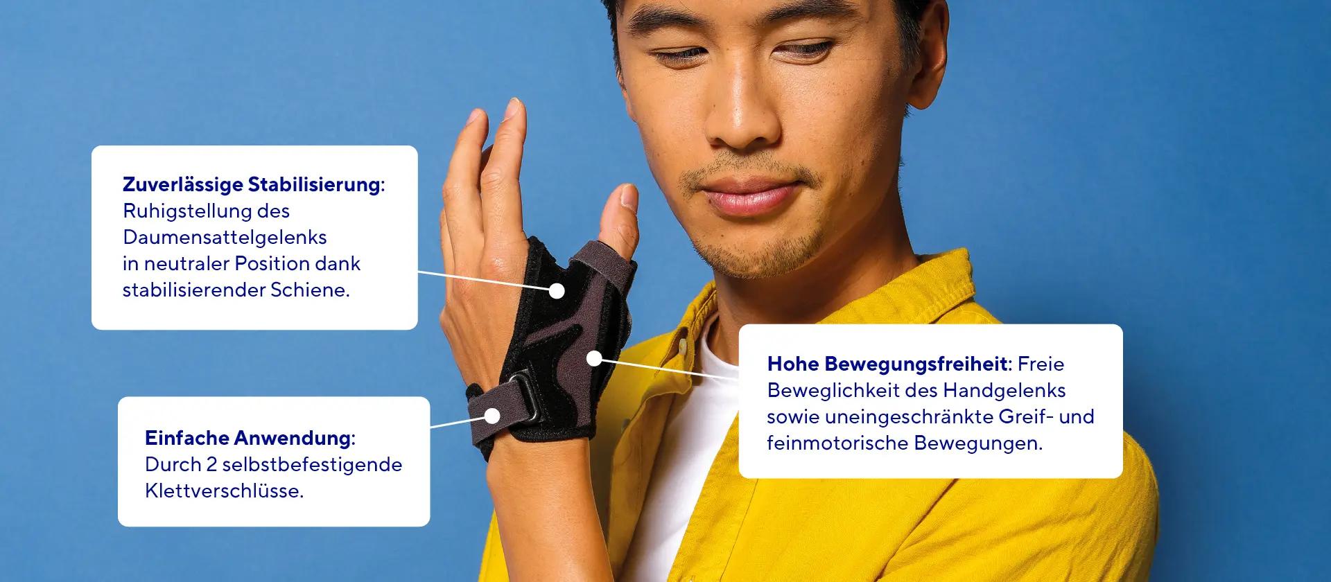 Ruhigstellung bei Schmerzen oder Verletzungen am Daumen.Verwenden Sie das Produkt nicht bei einer unsicheren Diagnose.