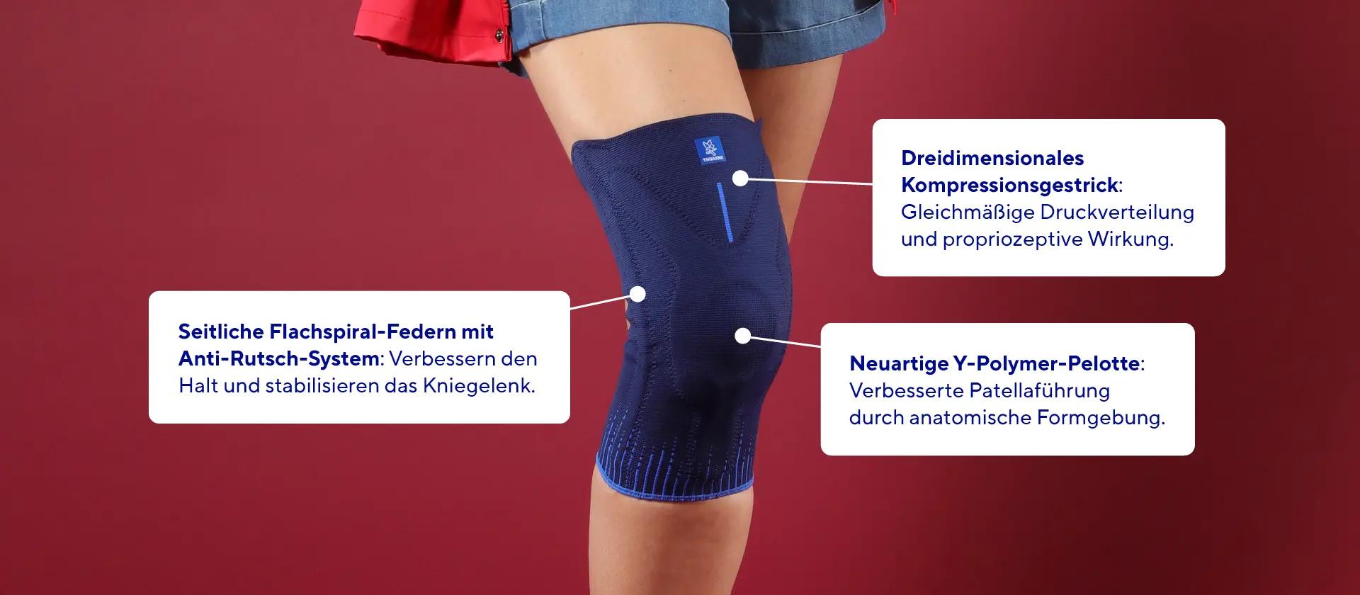 Die Y-förmige Pelotte hilft, die Patella an ihrem Platz zu halten und sorgt für Stabilität und eine korrekte Ausrichtung.