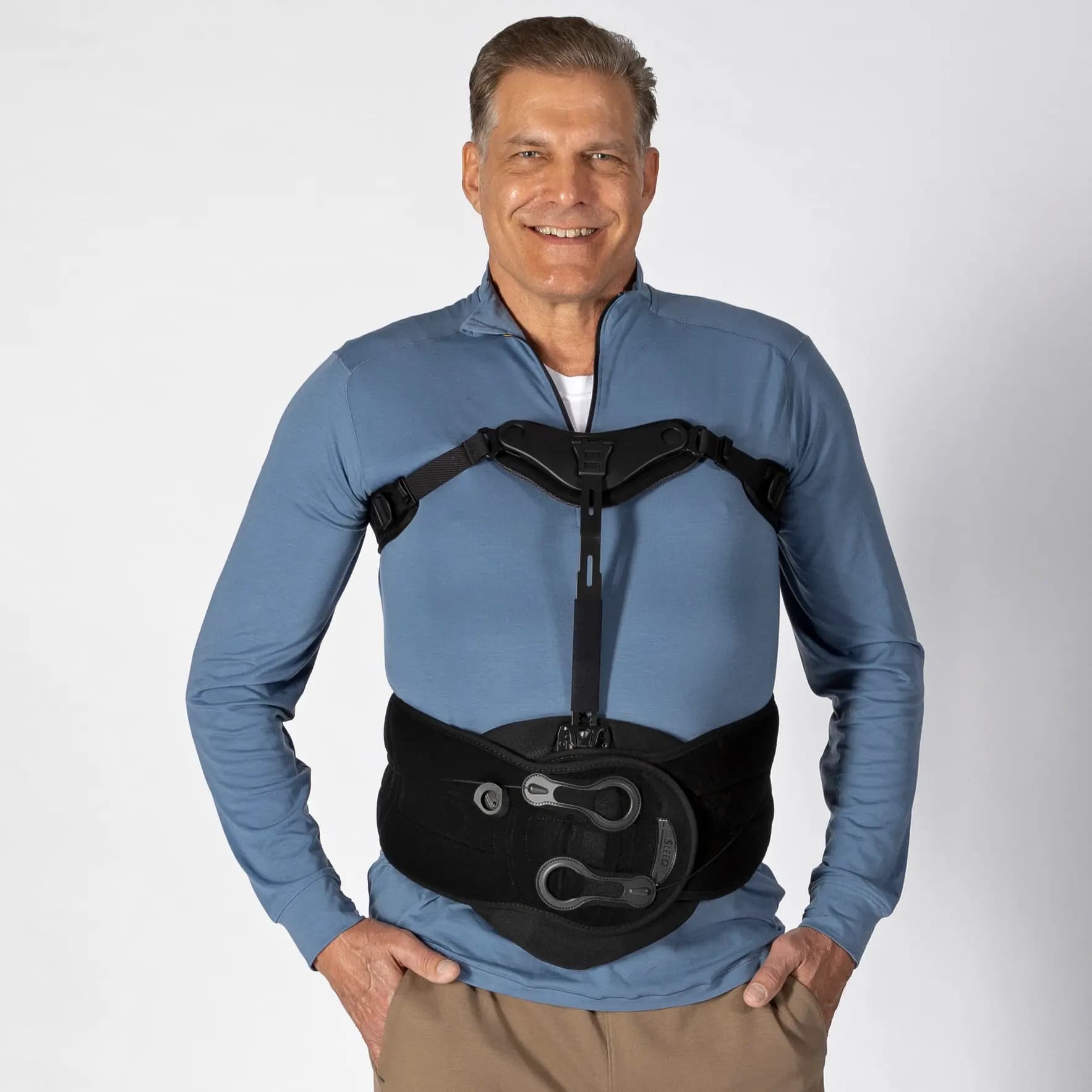Rückenorthese zur aktiven Entlastung und Korrektur der Wirbelsäule in Sagittalebene