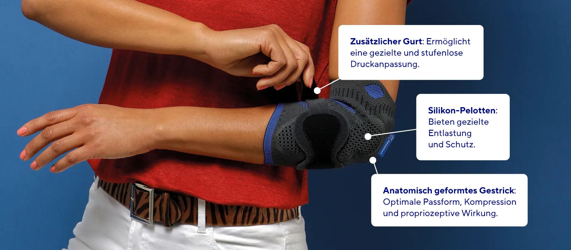 Die Silikonpelotten sorgen für eine gezielte Kompression, die die Belastung der Ellenbogensehnen verringert und die Blutzirkulation verbessert.