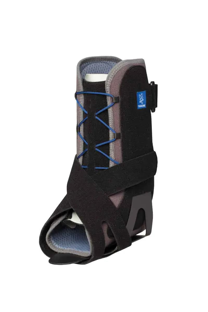 Die Orthese ist mit einem Kreuzgurt, einem U-förmigen Steg und Verstärkungselementen ausgestattet, die eine individuelle Unterstützung des Sprunggelenks und Passform ermöglichen. Die modulare Bauweise ermöglicht eine Abrüstung und stadiengerechte Therapie, d.h. durch Abnehmen einzelner Stabilisierungselemente wird kontrolliert mehr Bewegungsfreiheit gegeben und die Therapie wird den entsprechenden Heilungsphasen angepasst.