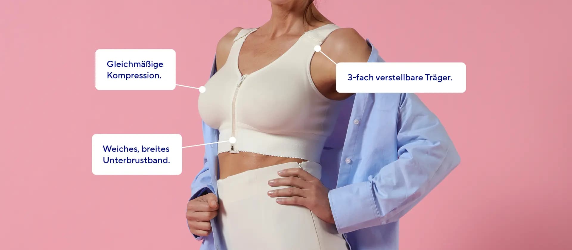 Cara ist ein Kompressions-BH für die Zeit nach plastisch-chirurgischen Eingriffen oder brusterhaltenden Operationen (BET).