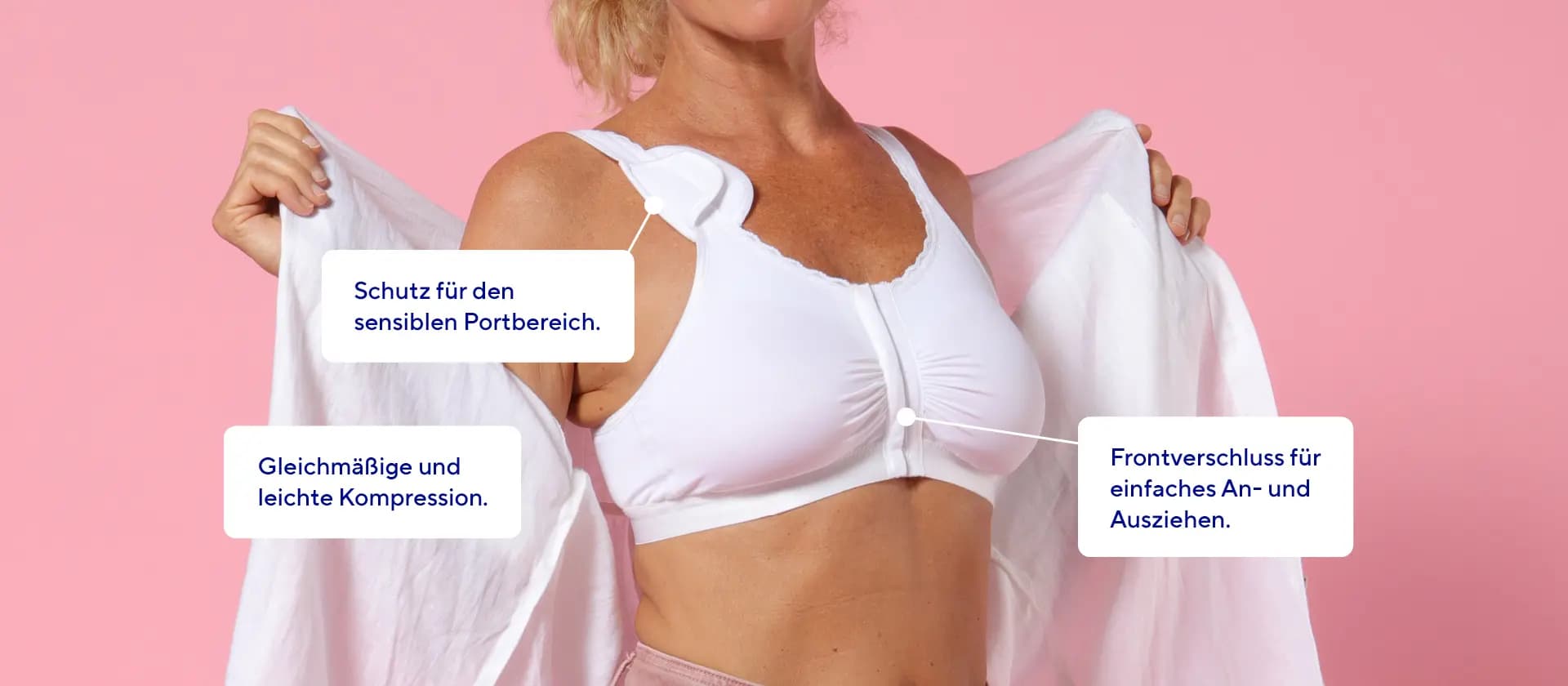 Sensitive Support ist ein sehr weicher Post-OP-BH für empfindliche Haut mit Portschutzpolster.