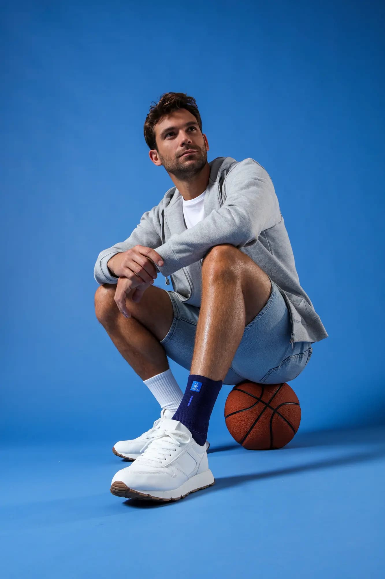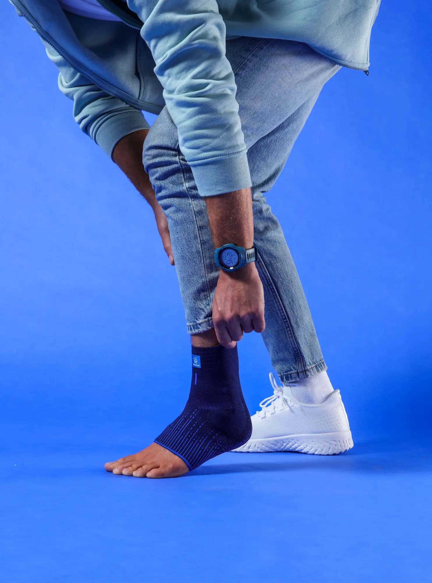 Sprunggelenkbandage mit verstärkter propriozeptiver Wirkung und anatomischen Pelotten