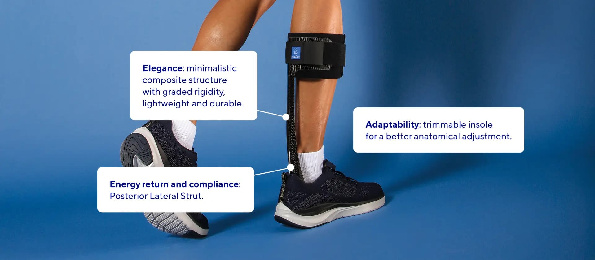 This dynamic ankle-foot orthosis (AFO) provides essential support to the foot, facilitating a more natural walking pattern and reducing the risk of falls.