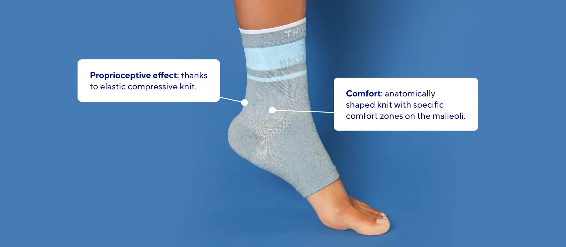MalleoSoft ankle brace is designed to provide mild compression and support, aiding in the management of ankle pain and swelling.
