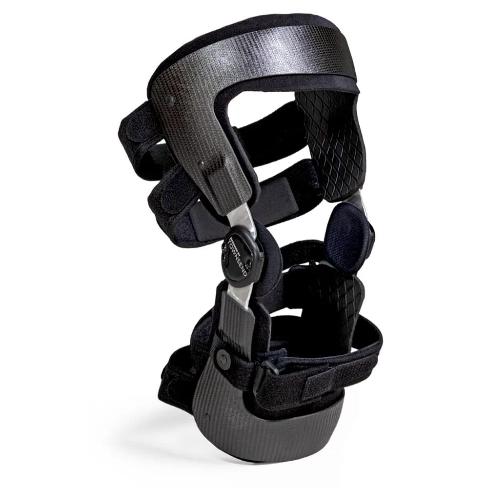 This knee orthosis is custom-made from a digital scan of the patient's leg, ensuring a precise fit that enhances both comfort and effectiveness.
