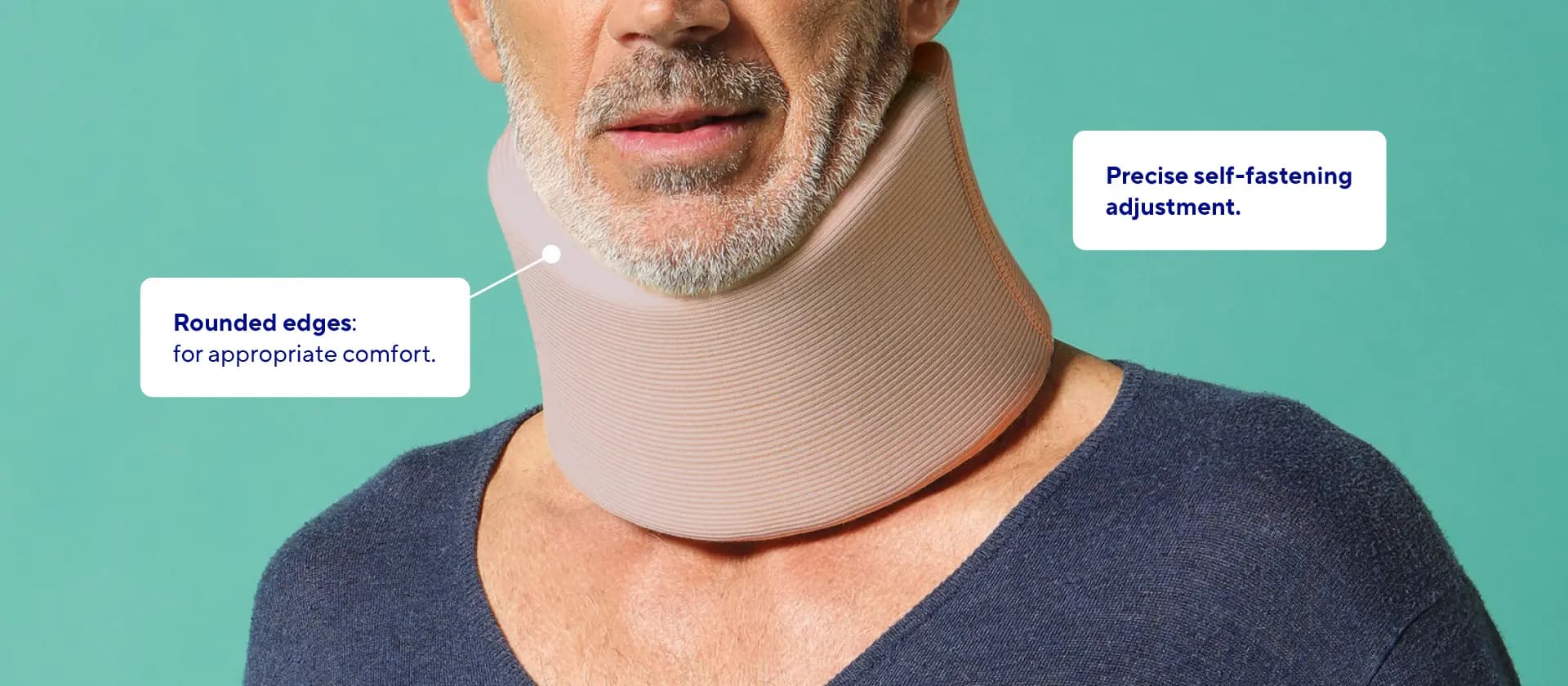 This soft cervical collar is designed with rounded edges to enhance comfort and prevent irritation during wear.