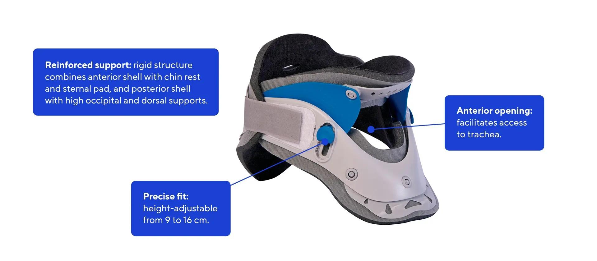 Ortel C4 Vario is a rigid cervical collar designed for patients requiring cervical immobilisation.