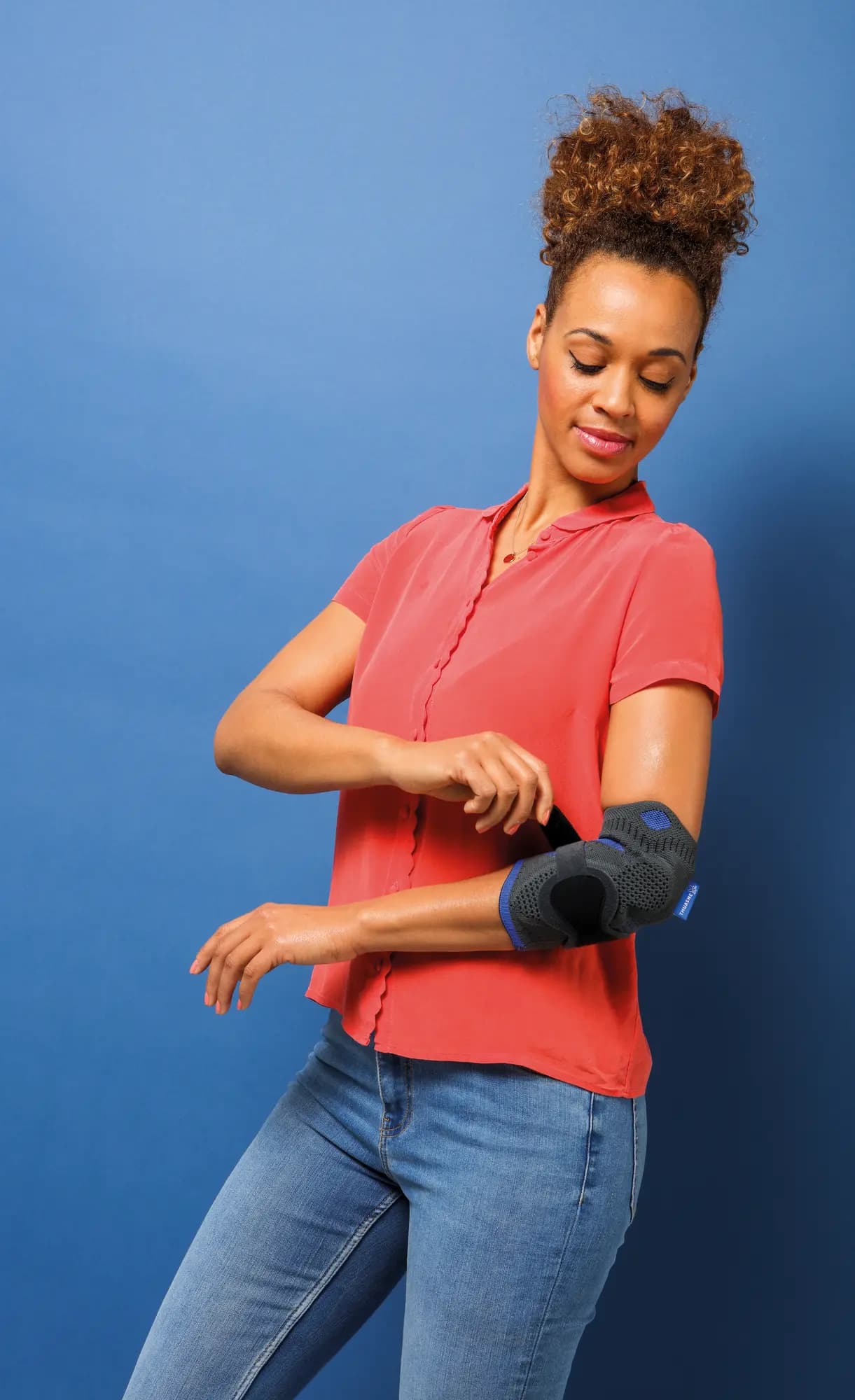 Do not use in the event of complex or surgical shoulder fractures, humeral fractures or rib cage fractures.Size Length elbow-phalanges Size 1 25 cm - 35 cm Size 2 35 cm - 45 cm Polyester - polyurethane - polyamide - cotton - POM (buckle)