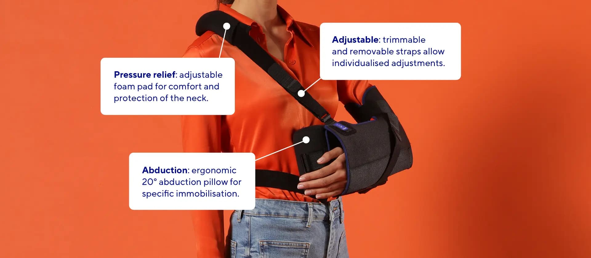 A neck pads help to relieved pressur around the cervical area. The + version includes an ergonomic 20° abduction cushion to provide a specific immobilisation angle, improving patient recovery.