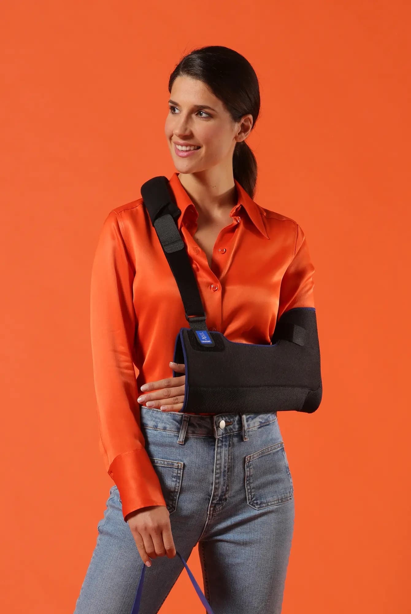 ImmoClassic+ is a shoulder immobilisation sling designed to support and immobilise the shoulder and elbow.