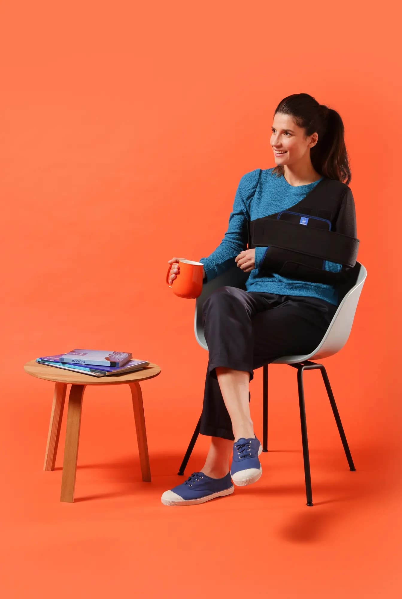 This sling is indicated for shoulder and/or elbow injuries or inflammatory conditions, conservative treatment of non-surgical fractures of the proximal humerus, shoulder dislocation, non-surgical fractures of the clavicle and/or scapula, post-operative immobilisation, prevention of shoulder subluxation or dislocation and support of a paralysed upper limb. ImmoClassic+ is available in two sizes, to suit different arm lengths. Its bilateral design means it can be used on either the left or right arm.