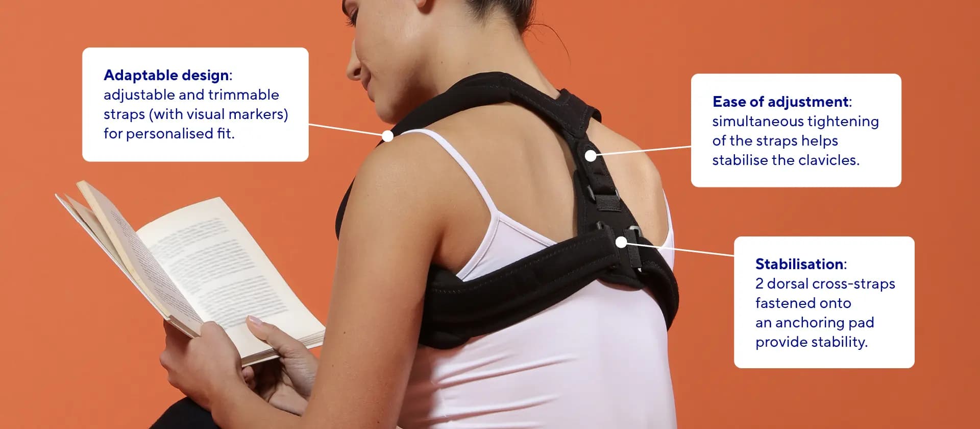 Ligaflex Clavicular Straps are easy to wear, featuring a secure fastening system that maintains stability while allowing free movement of the arms.