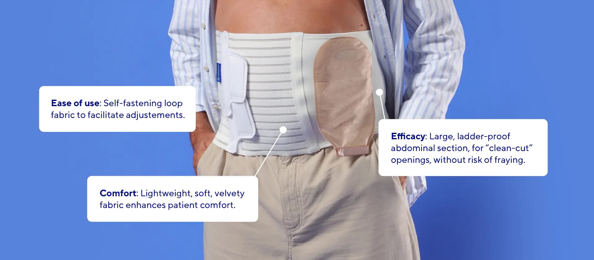 For comfort, Stomex uses smooth, soft, and lightweight2 fabrics that enhance patient well-being. The materials are breathable3,4 and moisture-wicking, helping to keep the skin dry and comfortable throughout the day.