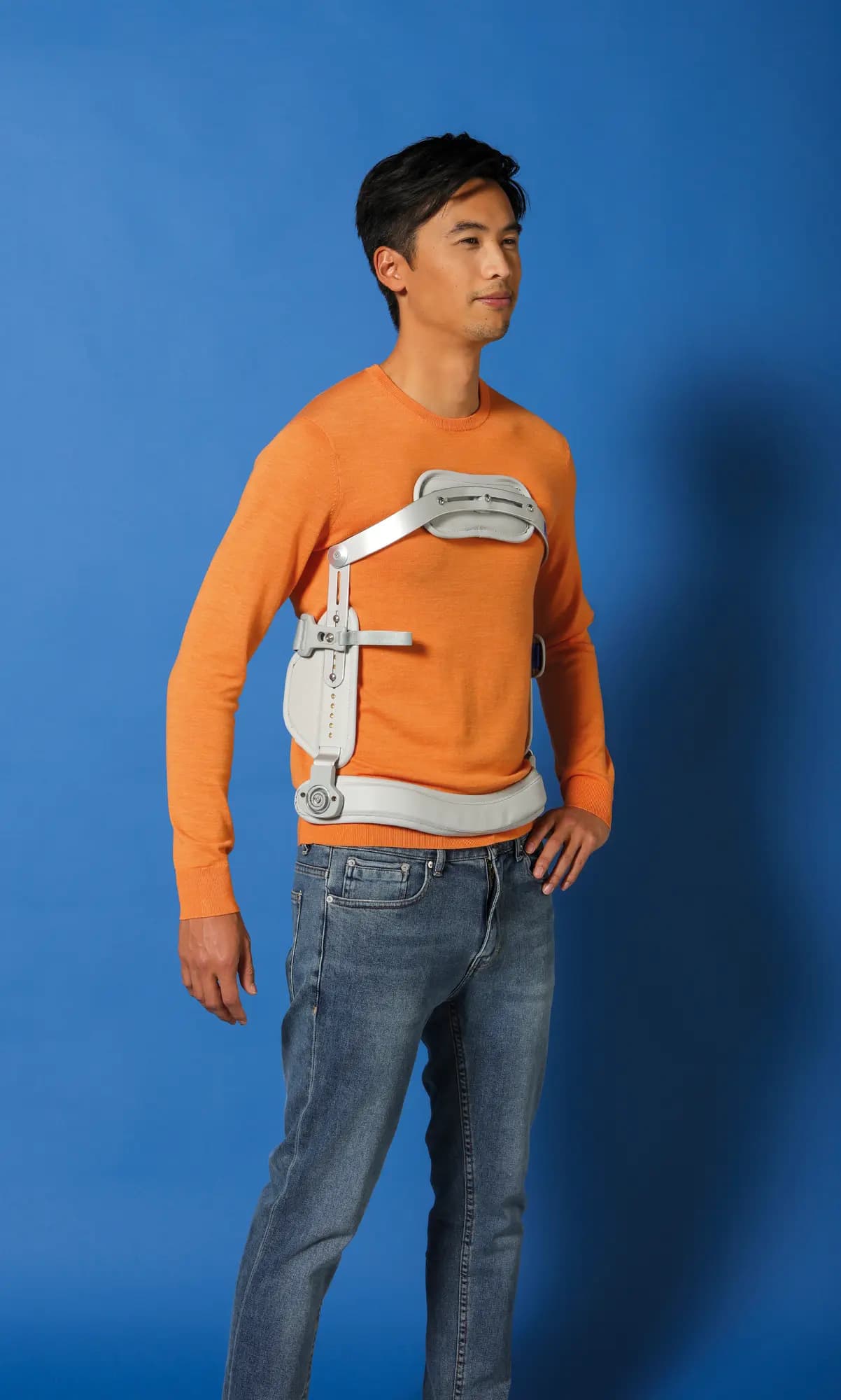 Compression bra designed for lymphatic drainage and reduction of oedema in the breast and chest wall after breast cancer surgery.