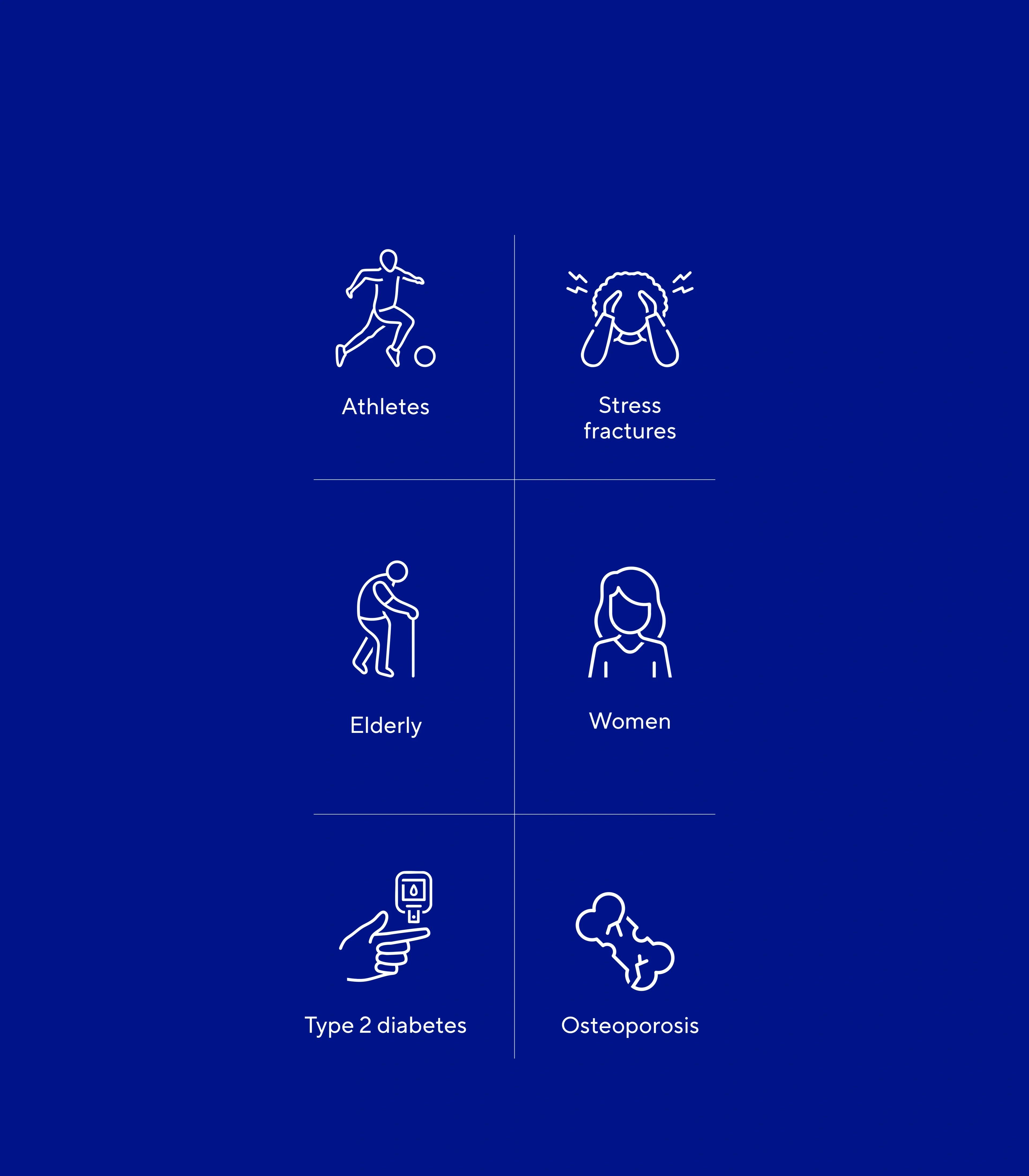 Fatigue fractures, resulting from repeated microtrauma, are a common problem among athletes. Women are at increased risk, particularly those with menstrual disorders, low body mass or low energy intake. These factors, sometimes combined with low bone mass, increase vulnerability to this type of fracture(10).