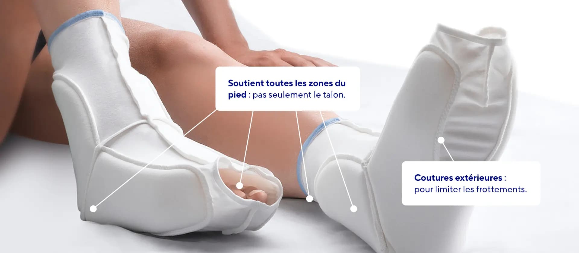 Prévention de l’escarre du pied, à destination des patients alités ou à mobilité réduite et présentant des risques d’escarres de niveau « moyen à élevé » selon l’échelle de Braden ou autre échelle validée, et selon l’avis du professionnel de santé.