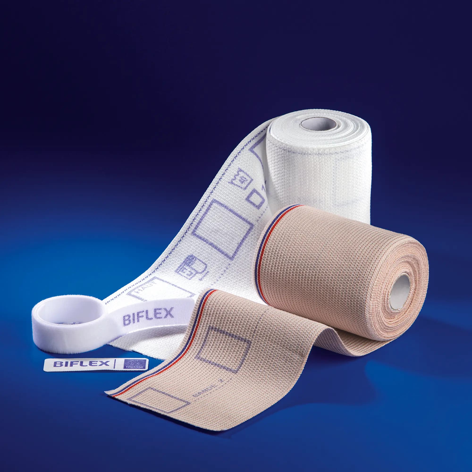 Le Kit Biflex est un kit de 2 bandes de compression, conçu pour fournir un traitement compressif efficace et confortable2, aux patients souffrant d'ulcères veineux des membres inférieurs, d'oedèmes veineux chroniques et de lymphœdèmes.