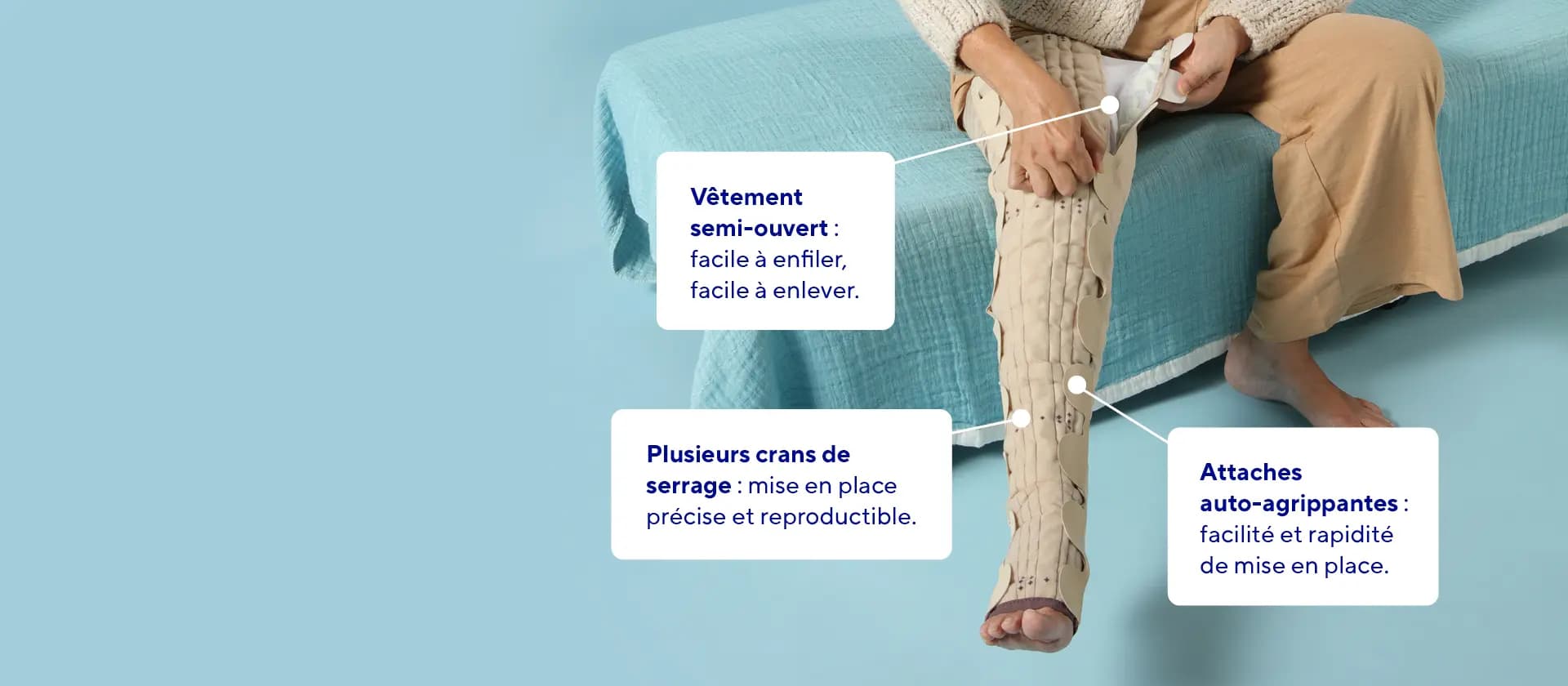 Le vêtement peut être ajusté avec précision à la forme de la jambe du patient.