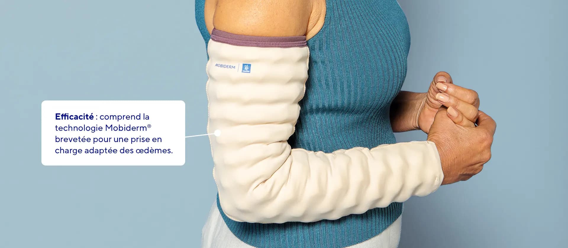 Le vêtement utilise la technologie Mobiderm®5, qui favorise un drainage lymphatique et une circulation efficaces en créant des zones de pression différentielles, qui aident à déplacer le liquide lymphatique.1