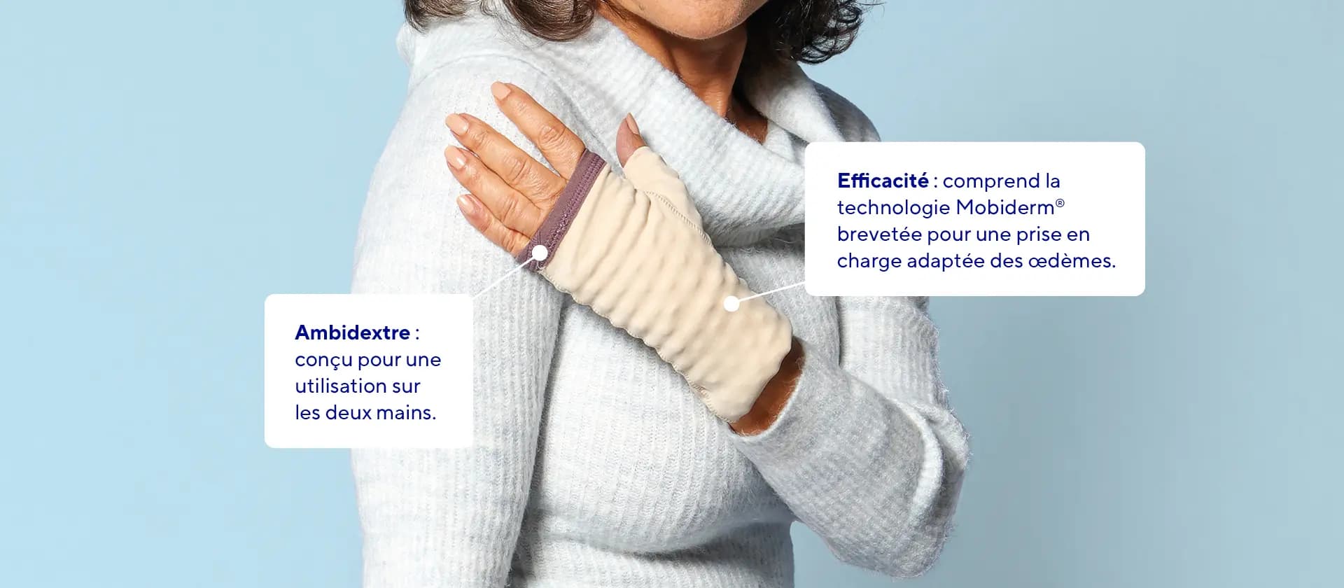 - La Mitaine Mobiderm® Standard est utilisée pour gérer les lymphoedèmes légers à modérés des mains en maintenant la réduction du gonflement.(1)(2)