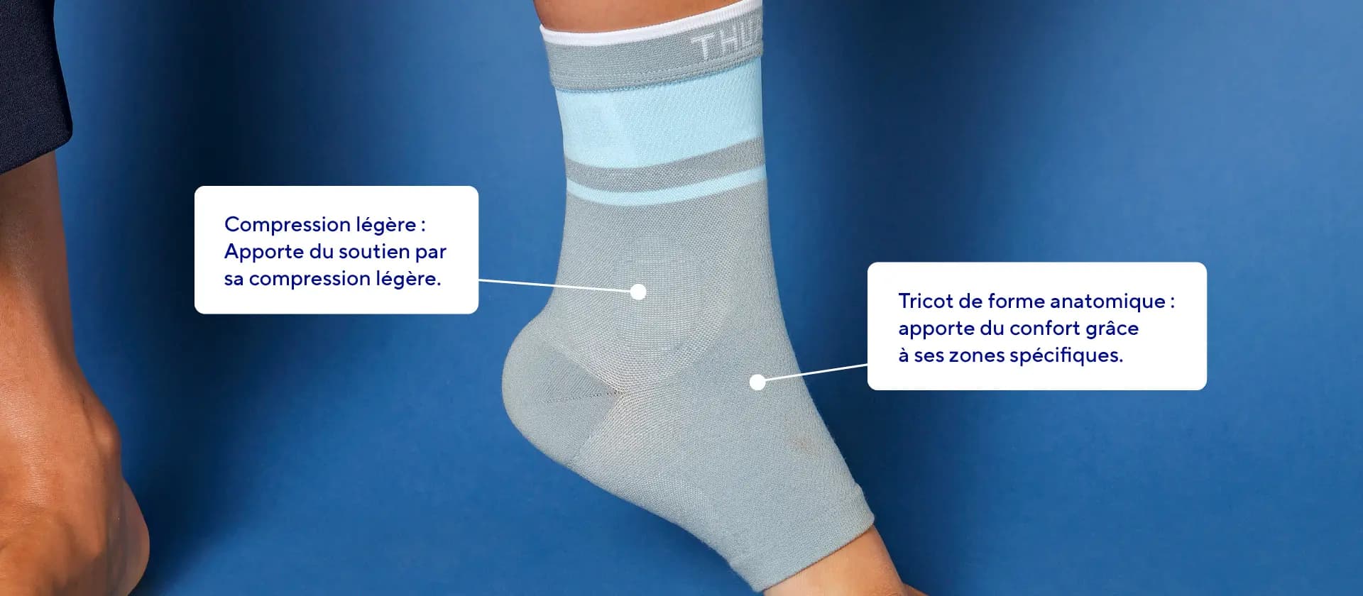 La chevillère élastique est conçue pour fournir une légère compression et un soutien, aidant à gérer la douleur et le gonflement de la cheville.