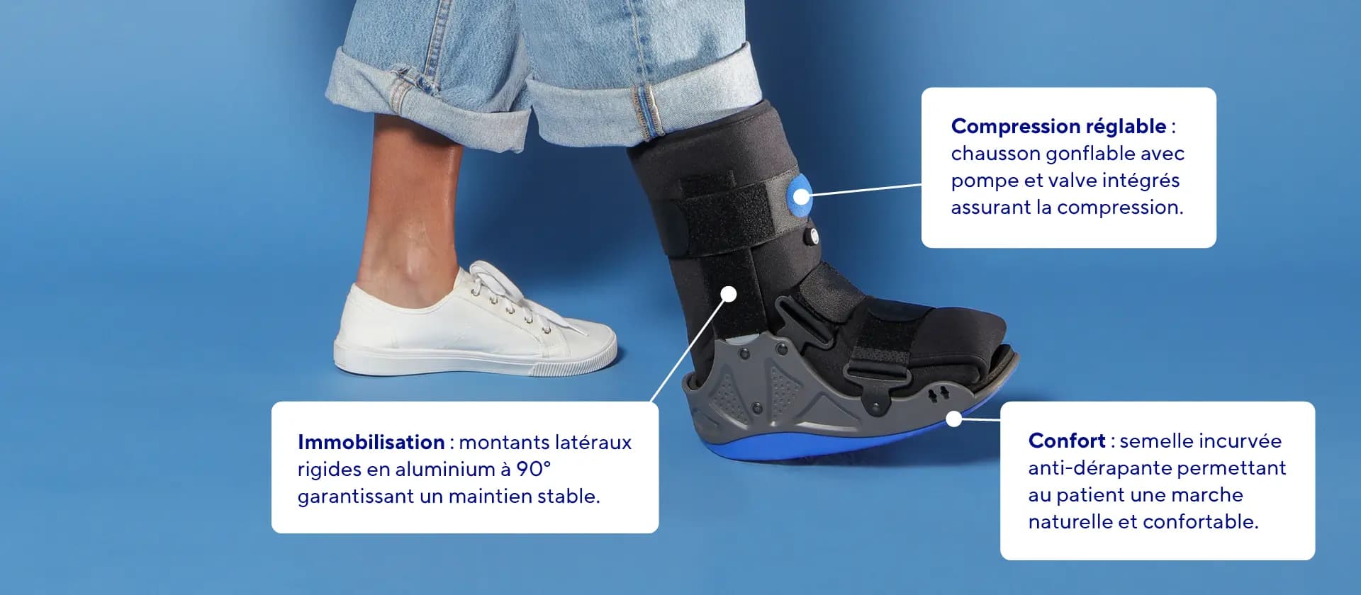 - Oui, LigaStep AIR Walker est doté d'un chausson gonflable et de sangles repositionnables pour un ajustement personnalisé.