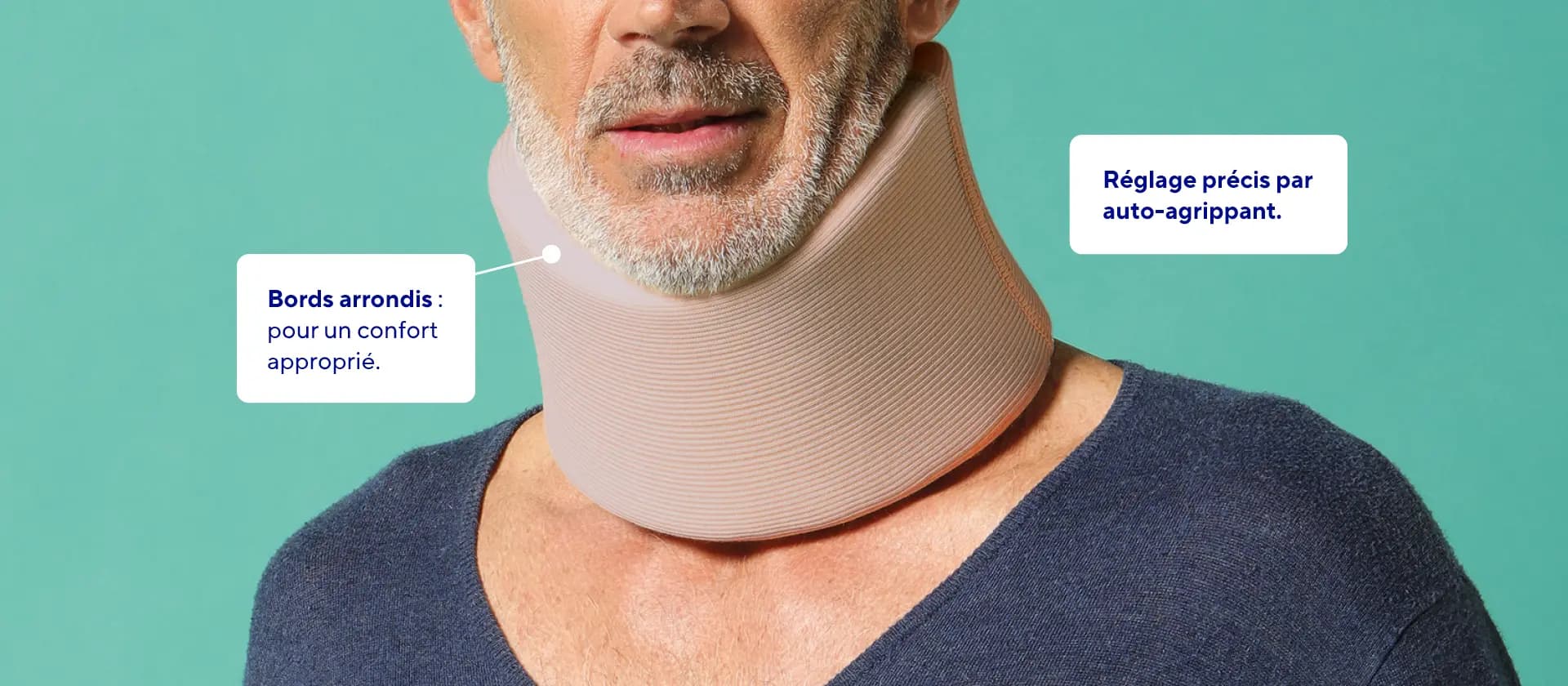 Rééducation après le port d'un collier cervical rigide.Ne pas placer le produit directement en contact avec une peau lésée.