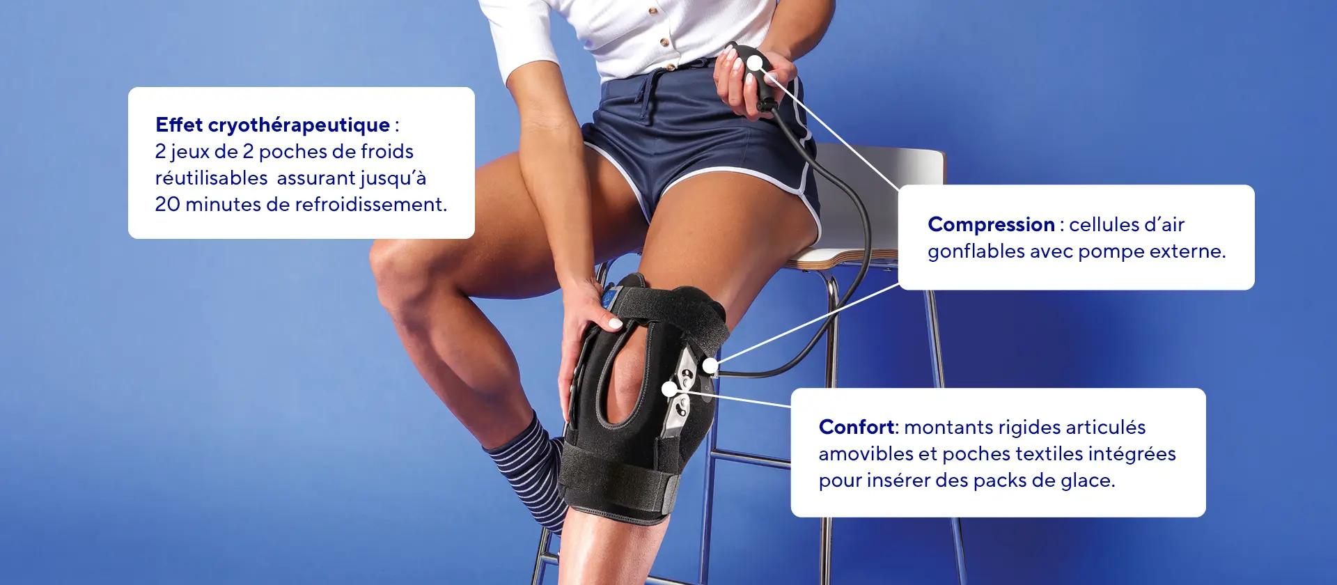 Douleur et/ou œdème du genou.Thérapie par le froid et la compression des lésions et/ou ruptures ligamentaires du genou (ligaments croisés et/ou latéraux).
