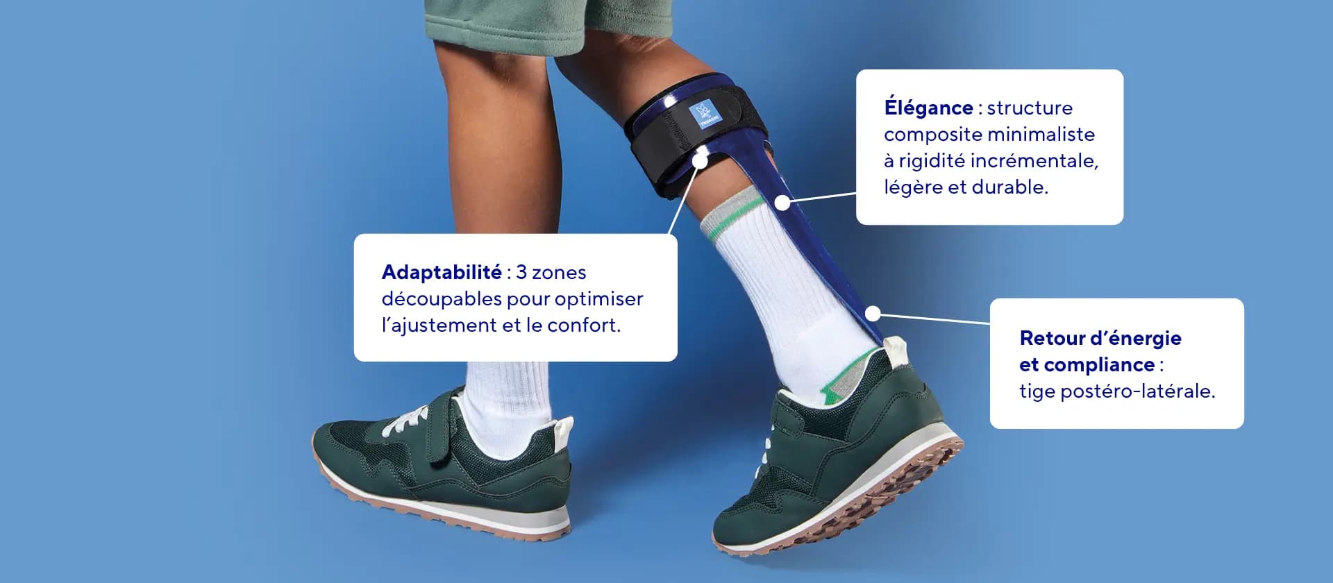 Cette orthèse aide à prévenir les trébuchements et les chutes, favorisant ainsi des mouvements plus sûrs.