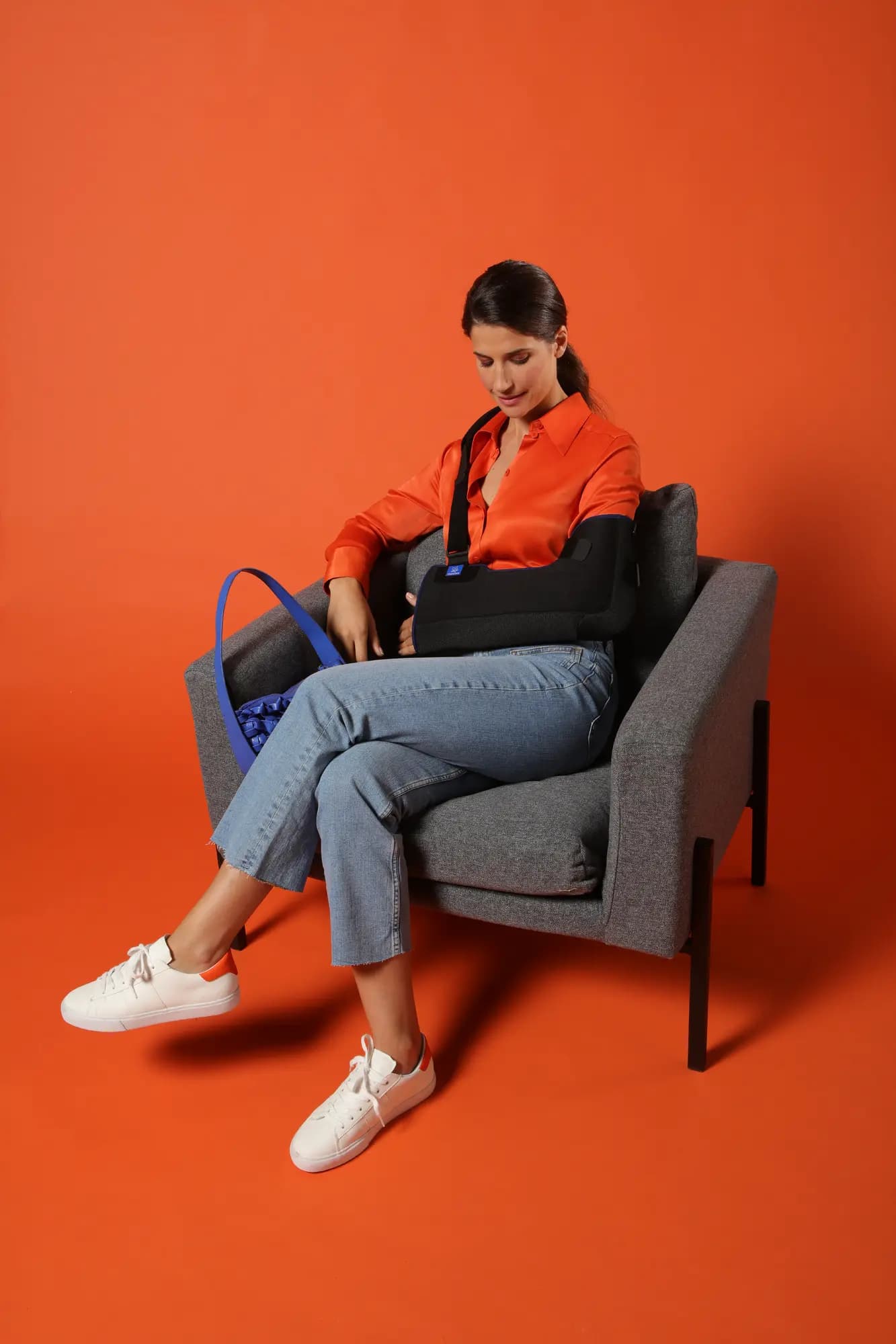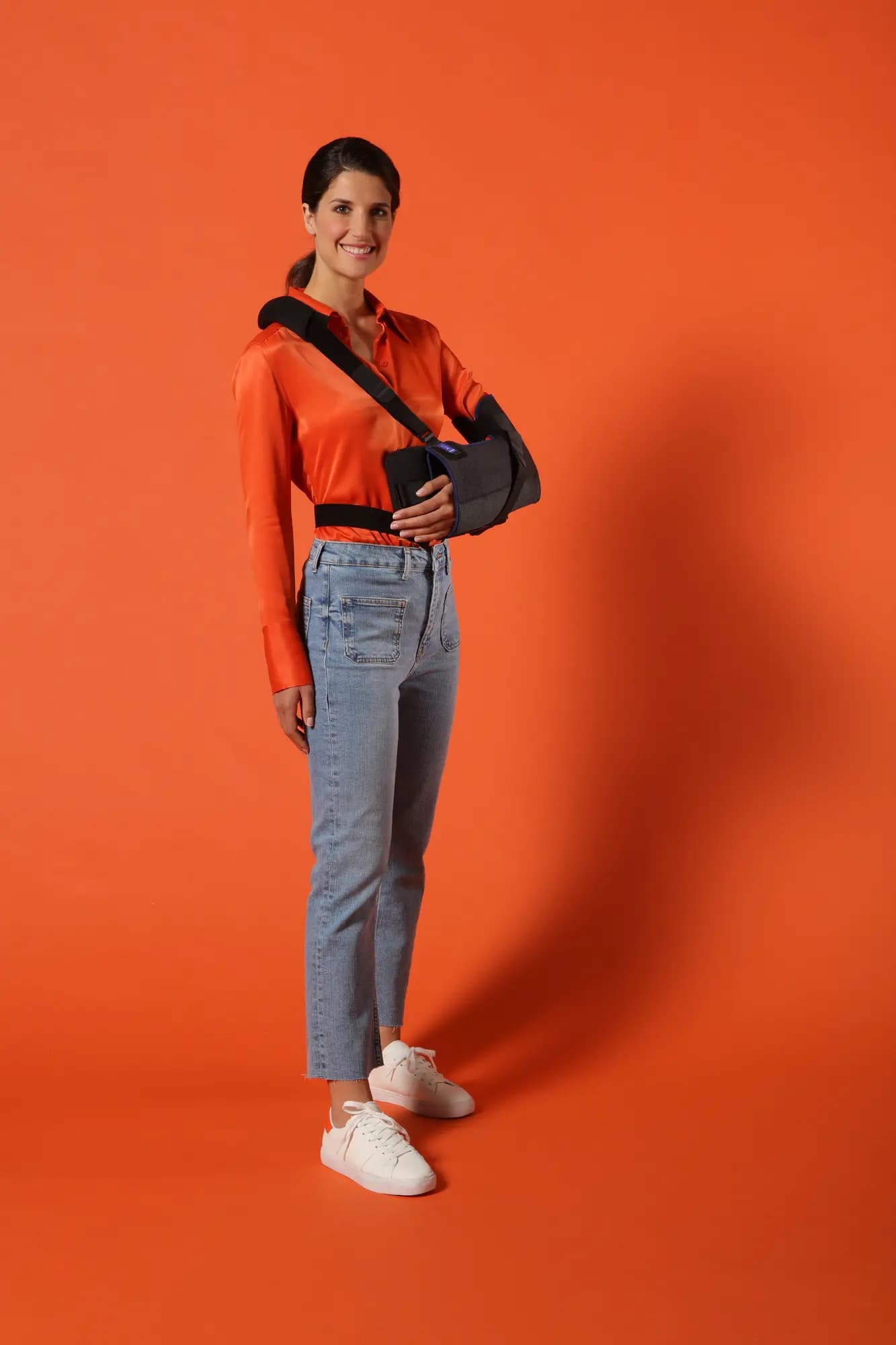 Echarpe d'immobilisation de l'épaule réglable avec coussin d'abduction ergonomique.