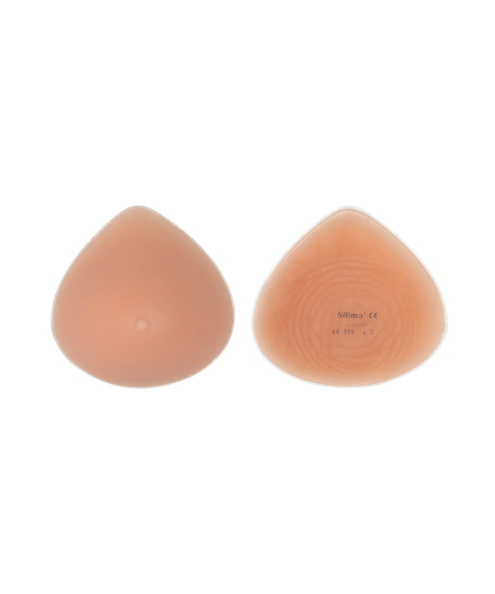 La prothèse mammaire externe Silima® CONFORM a une forme symétrique et anatomique qui épouse l'ensemble du sein dans sa globalité, notamment le bas du sein.
