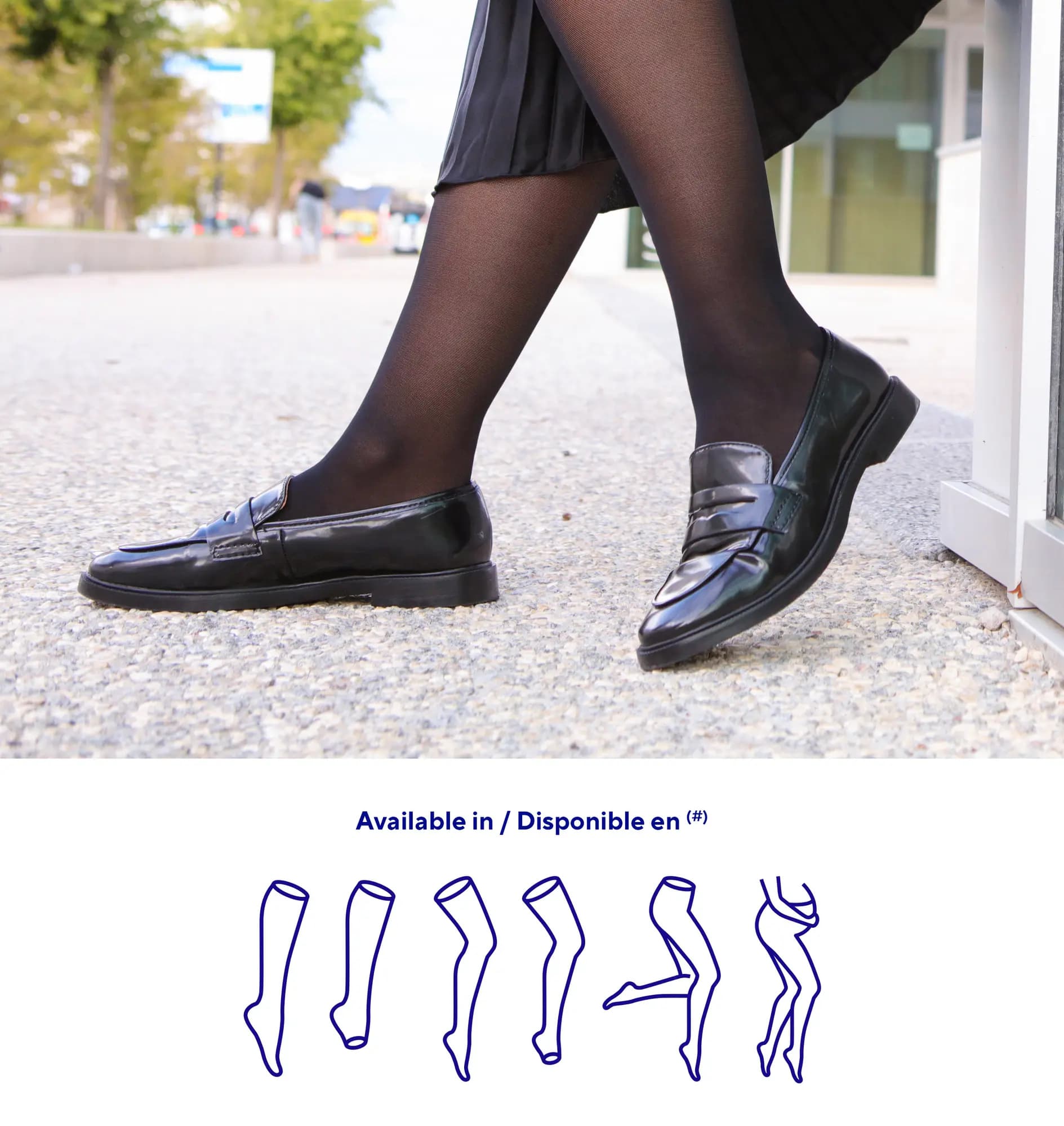 Venoflex Secret est également disponible en format bas et collant, en solution opaque et pour femme enceinte.