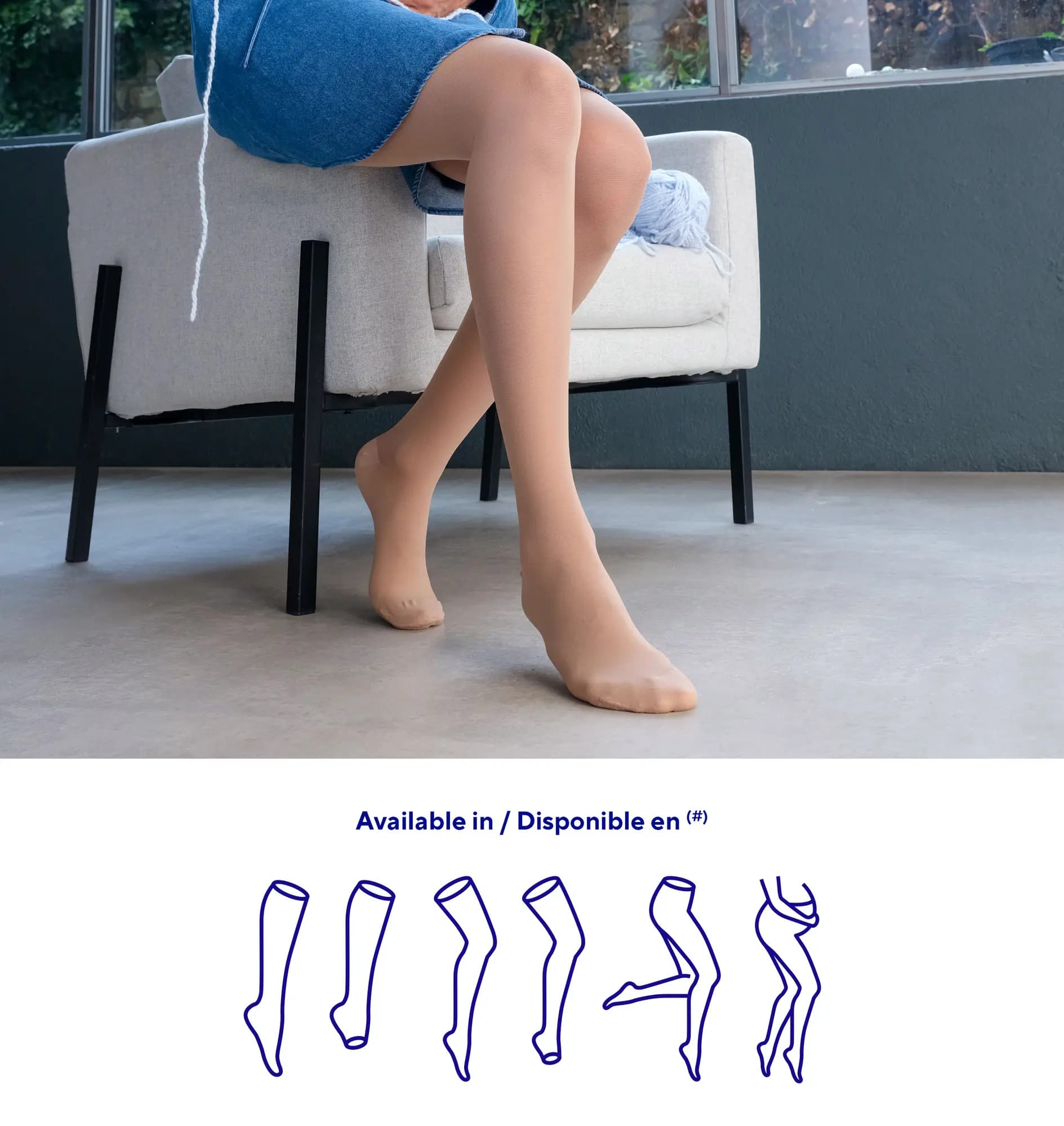 Ne pas utiliser en cas de thrombose septique.Hauteur Hauteur Sol / Entrejambe Normal 68 cm - 74 cm Long 74 cm - 80 cm Taille Tour de cheville Tour de cuisse Tour de taille Tour de hanches Taille 1 19 cm - 21 cm 45 cm - 54 cm 93 cm 128 cm Taille 2 21 cm - 24 cm 50 cm - 59 cm 96 cm 133 cm Taille 3 24 cm - 26 cm 56 cm - 66 cm 104 cm 145 cm Taille 4 26 cm - 29 cm 58 cm - 69 cm 110 cm 154 cm Taille 5 29 cm - 31 cm 63 cm - 74 cm 113 cm 162 cm Polyamide, élasthanne.