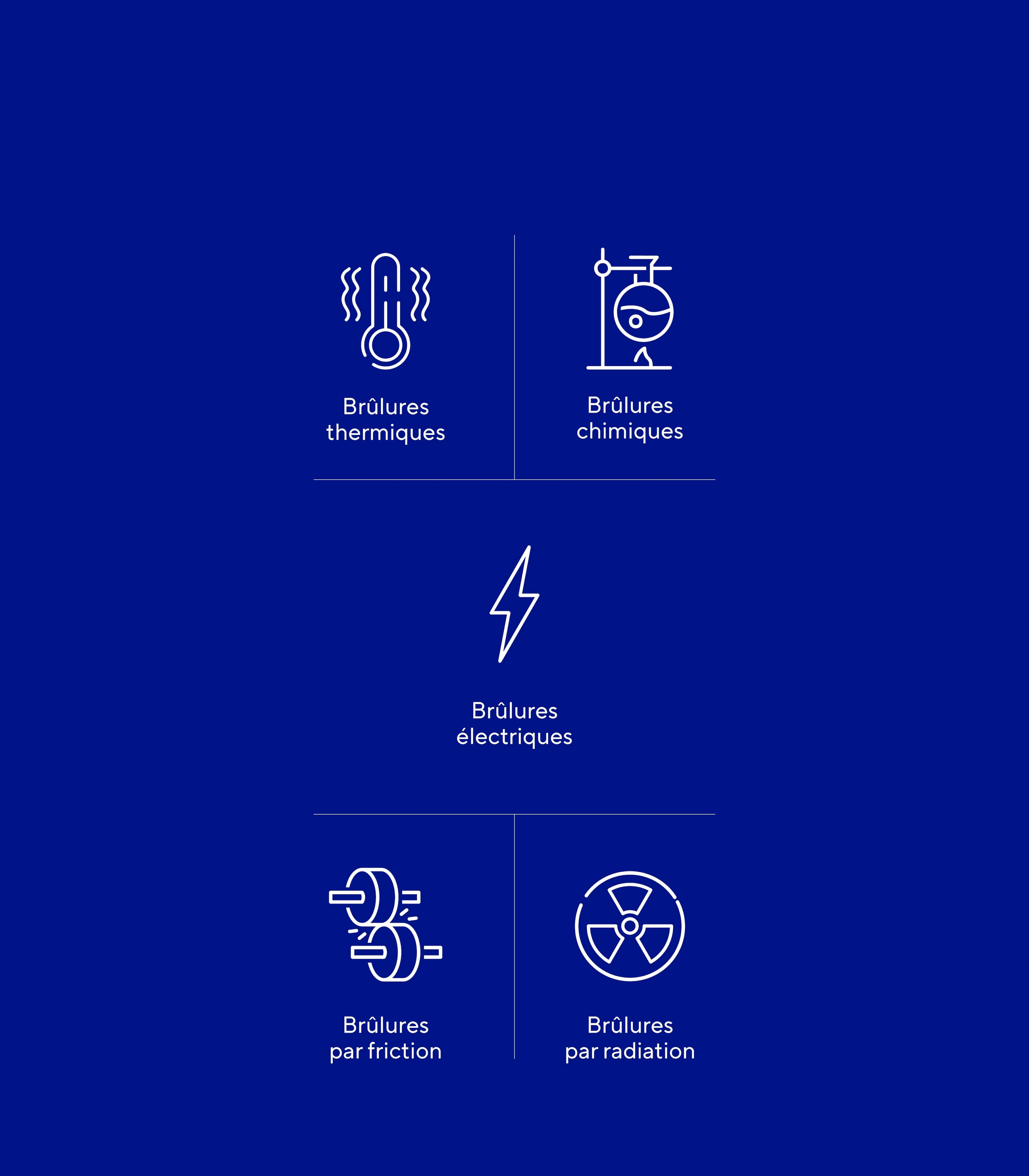Les situations favorisant les brulures sont diverses : accidents domestiques (52%), accidents du travail (18%), accidents de loisirs (10%), tentatives de suicide (3%), accident de la voie publique (3%), incendies (3%)...(2)