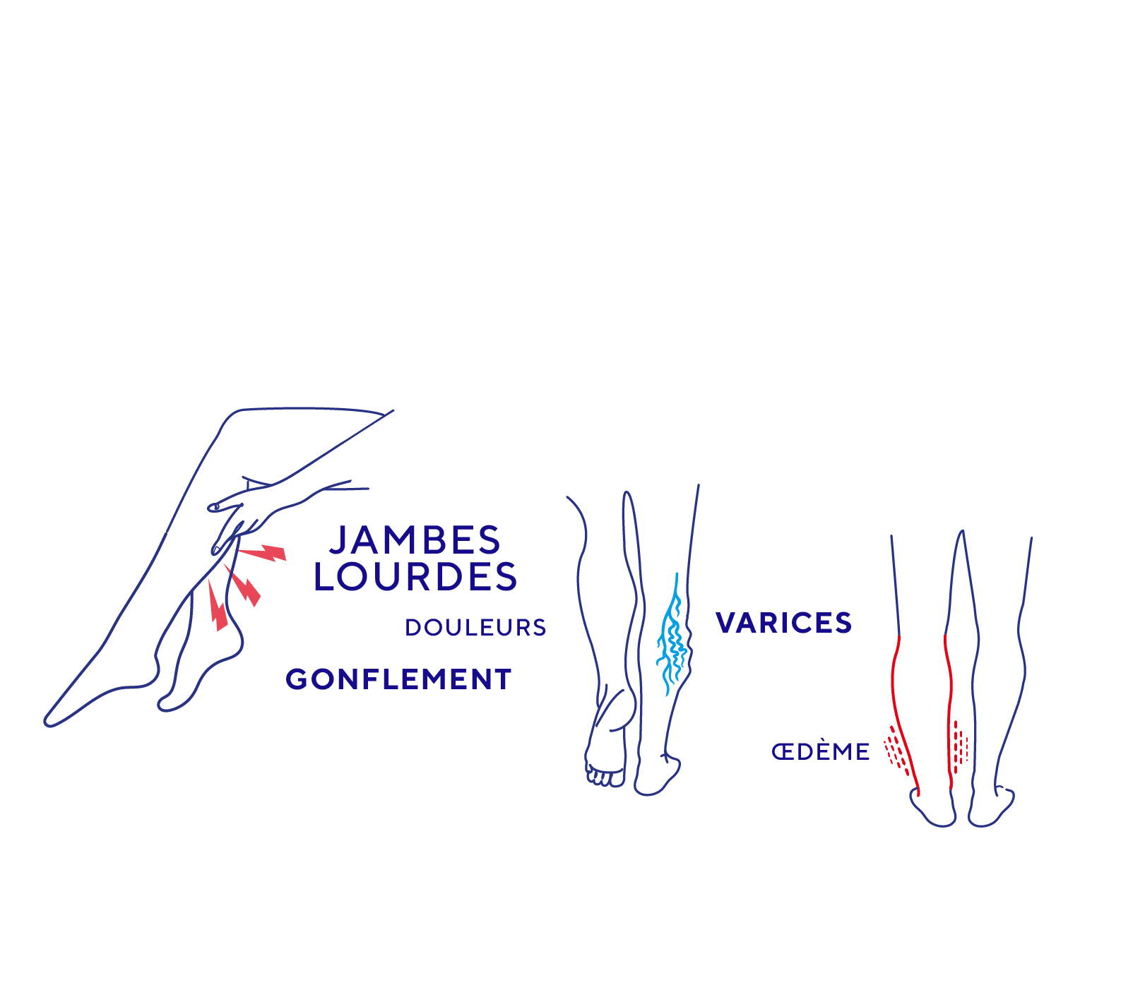 Ce mauvais retour veineux est à l’origine de la sensation de jambes lourdes, souvent accompagnée de picotements, de gonflement et autres complications citées juste avant (varices, modifications cutanées, ulcérations etc.). Une hypoxie et une inflammation sont également à l’origine de ces complications(2,7).