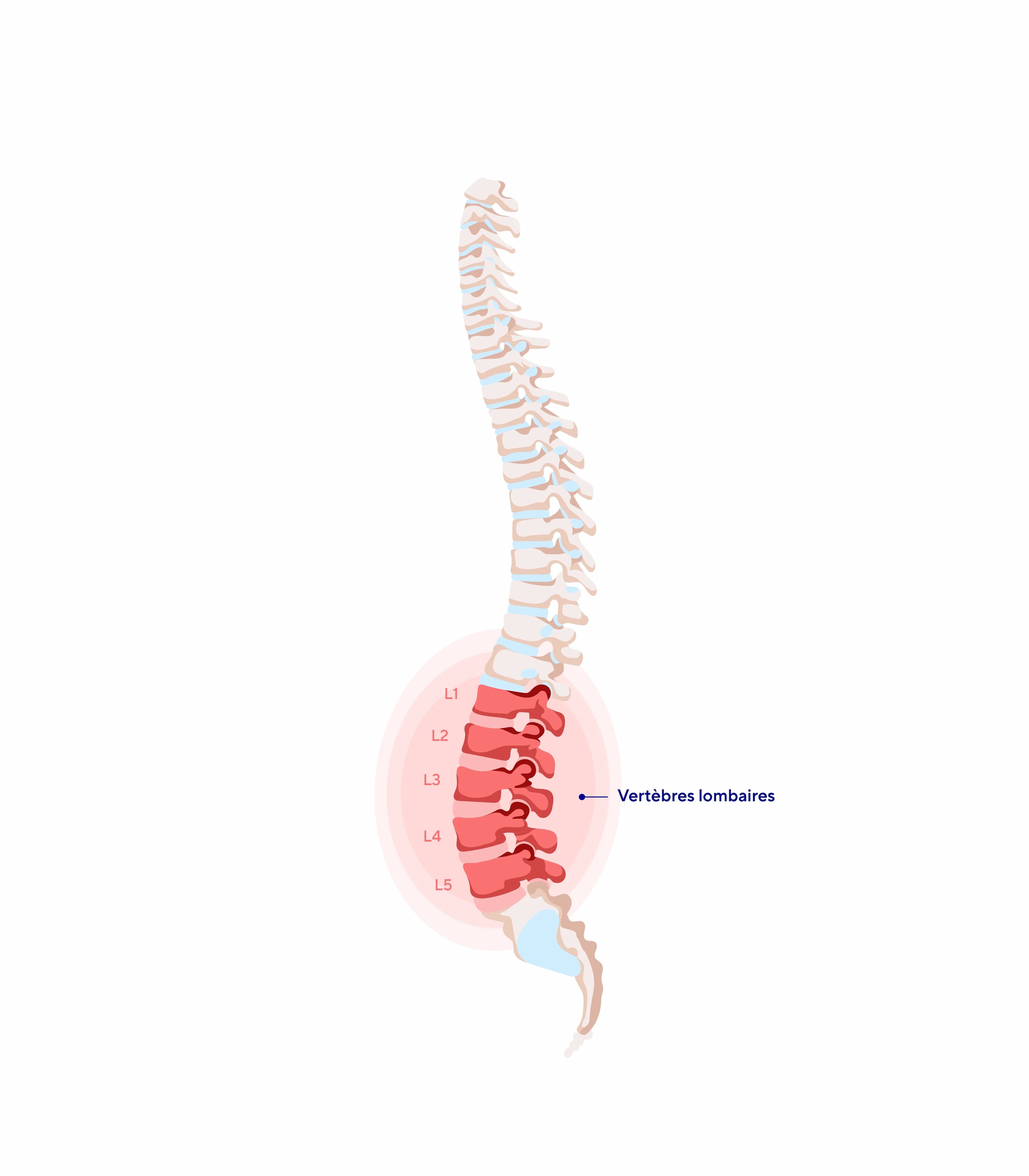 En plus de douleurs au niveau des vertèbres lombaire, la lombalgie peut se traduire par une sensation de blocage ou des difficultés à faire certains mouvements. On distingue deux grands types de lombalgies1 : les lombalgies non spécifiques / communes de cause locale musculaire ou ligamenteuse et les lombalgies spécifiques en lien avec une autre maladie sous-jacente (maladie inflammatoire, cancer...) ou un problème structurel de la colonne vertébrale.