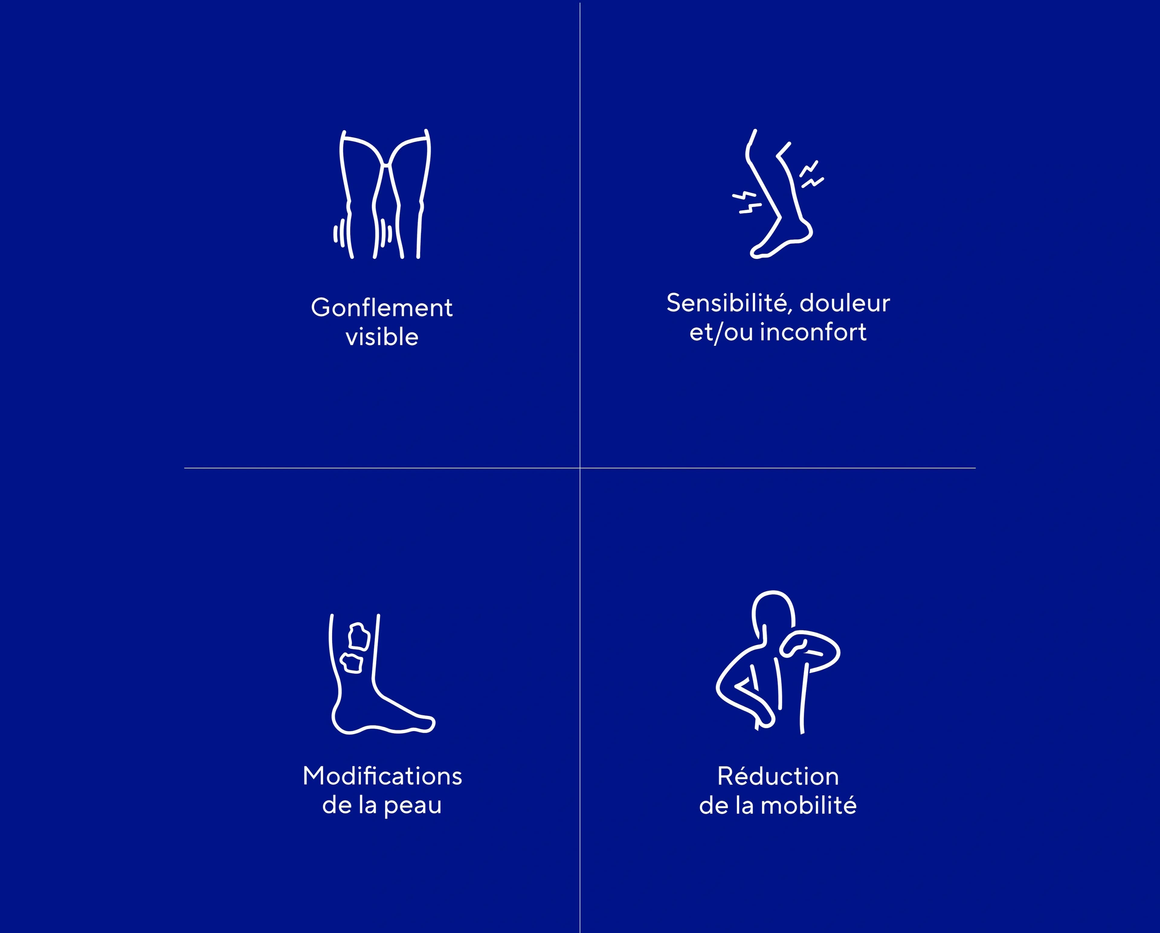 Une sensibilité, douleur et/ou inconfort : L’œdème peut provoquer une douleur (œdème localisé), une sensation de lourdeur dans la zone gonflée ou de chaleur et donc causer de l'inconfort, en particulier lorsque les membres sont sollicités ou en fin de journée.